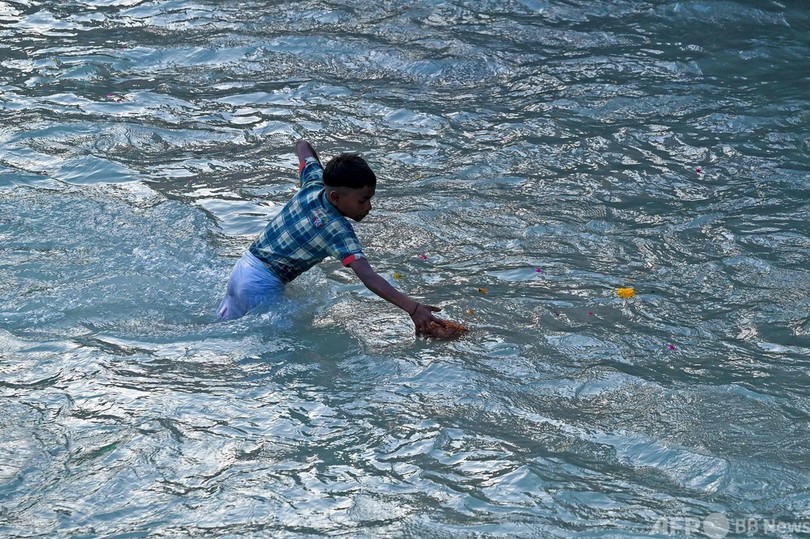 【4月13日 AFP】ヒンズー教の聖地、インド北部ハリドワール(Haridwar)では巡礼者が、魂が清められると信じガンジス(Ganges)川に身を沈める。その傍らで少年は、富を求めガンジス川に身を沈める。