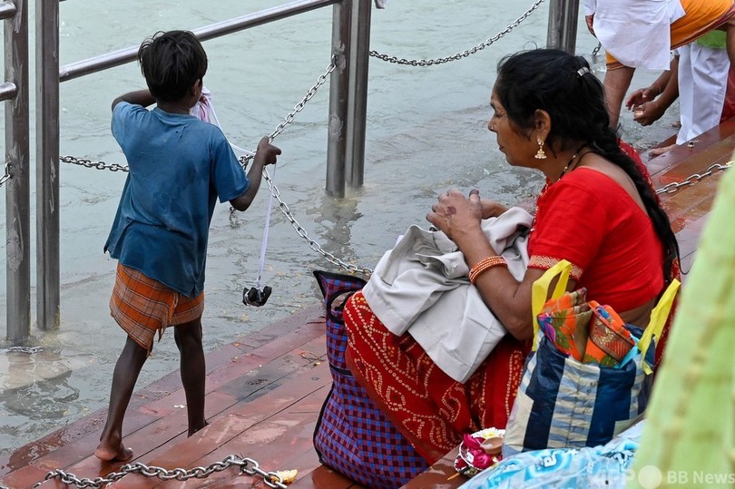 【4月13日 AFP】ヒンズー教の聖地、インド北部ハリドワール(Haridwar)では巡礼者が、魂が清められると信じガンジス(Ganges)川に身を沈める。その傍らで少年は、富を求めガンジス川に身を沈める。