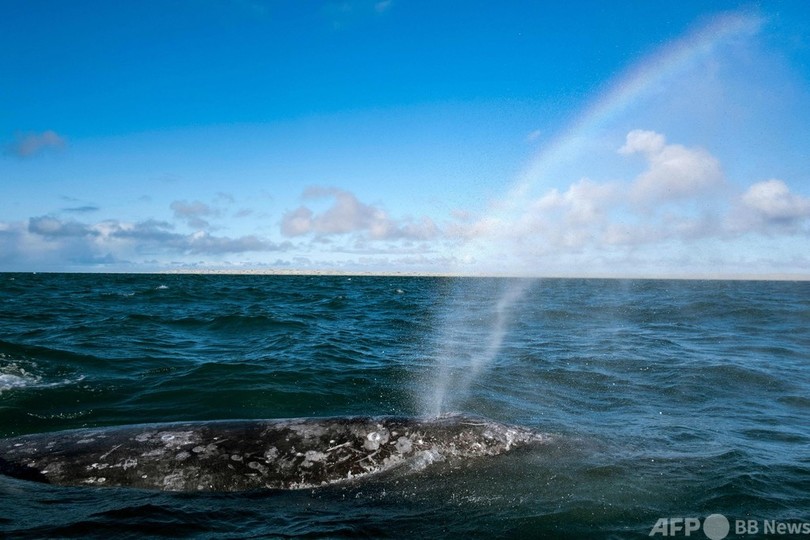 コククジラは毎年、夏季の餌場である米アラスカ州沖から、水温の高い繁殖地のメキシコ北西部沖まで約9000キロの距離を移動する。