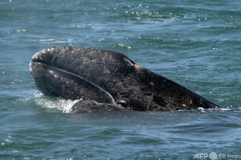 大きさはザトウクジラと同程度だが、斑点のある灰色の体が特徴で、大きいもので15メートルほど、体重は30~40トンにもなる。(c)AFP/Guillermo Arias