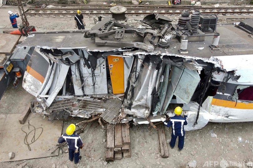 【4月6日 AFP】台湾で特急列車が作業車に衝突し脱線した事故で、運輸安全調査委員会は6日、作業車が線路に転落したのは衝突のわずか1分余り前だったと明らかにした。