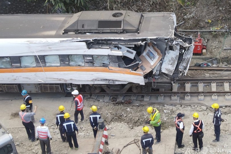 【4月6日 AFP】台湾で特急列車が作業車に衝突し脱線した事故で、運輸安全調査委員会は6日、作業車が線路に転落したのは衝突のわずか1分余り前だったと明らかにした。