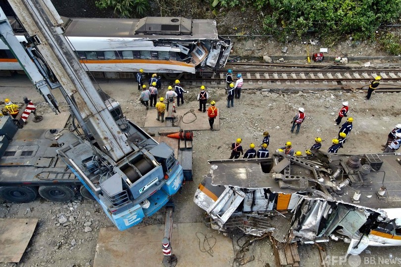 【4月6日 AFP】台湾で特急列車が作業車に衝突し脱線した事故で、運輸安全調査委員会は6日、作業車が線路に転落したのは衝突のわずか1分余り前だったと明らかにした。