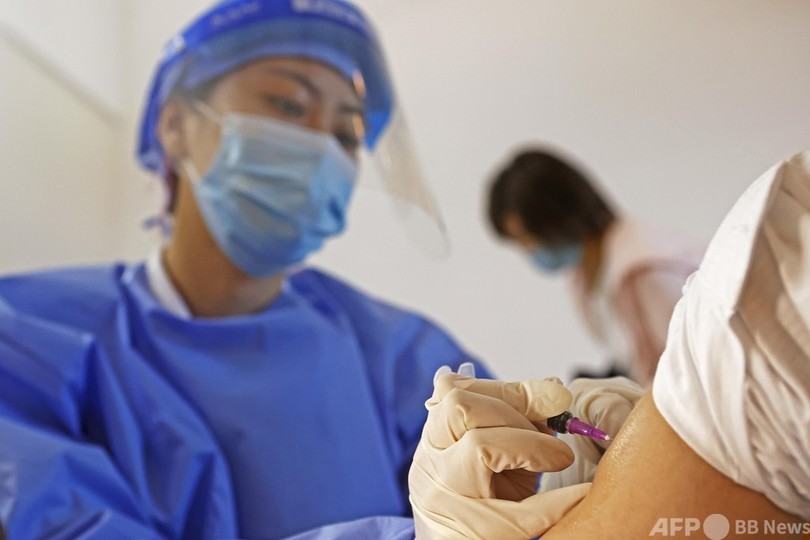 この臨時仮設の予防接種所には、ショッピングエリアや周辺の工業団地の従業員、また買い物客にもワクチン予防接種サービスを提供している。(c)CNS/JCM/AFPBB News