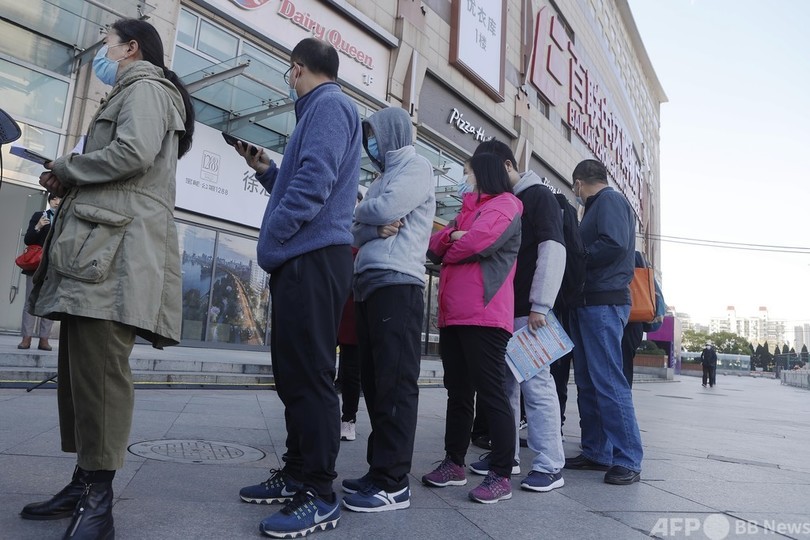 【4月10日 CNS】上海市普陀区(Putuo)長征鎮(Changzheng)の中環百聯ショッピングエリアで5日、外に設置された新型コロナウイルスワクチンの臨時予約所の前に、多くの市民が行列を作っていた。