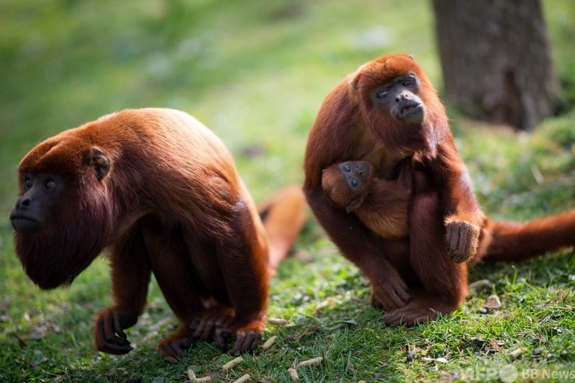 【4月9日 AFP】フランス西部ナント(Nantes)近郊の動物園「プラネット・ソバージュ(Planete Sauvage)」で、2月16日に生まれたアカホエザルの雄の赤ちゃんションゴがお披露目された。中南米の固有種であるアカホエザルの赤ちゃんがフランスの動物園で生まれたのは、ションゴが初めて。(c)AFP