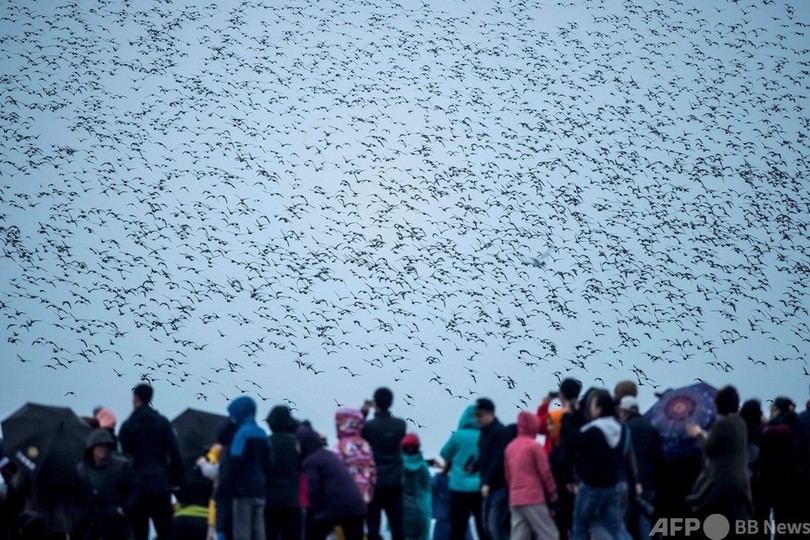 ニュース ライフ 空を覆い尽くす渡り鳥 中国・丹東 2021年4月9日 17:32 発信地:丹東/中国 [ 中国 中国・台湾 ] このニュースをシェア ‹ › ❮ 4/4 ❯ 中国と北朝鮮の国境を流れる鴨緑江の河口付近に飛来した無数の渡り鳥と、それを見物する人々(2021年4月4日撮影)。(c)STR / AFP 画像作成中 ! 【4月9日 AFP】中国と北朝鮮の国境を流れる鴨緑江(Yalu River)の河口に近い中国側の都市、遼寧(Liaoning)省丹東(Dandong)の湿地帯に無数の渡り鳥が飛来し、市民が見物に訪れている。(c)AFP ライフ 一覧へ> メディア・報道関係・法人の方向け 写真・動画 購入のお問合せ>