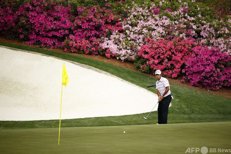 【4月10日 AFP】男子ゴルフ米国ツアーメジャー第1戦、第85回マスターズ・トーナメント(The Masters Tournament 2021)は9日、米ジョージア州オーガスタのオーガスタ・ナショナル・ゴルフクラブ(Augusta National Golf Club、パー72)で2日目が行われ、2位タイから出た松山英樹(Hideki Matsuyama)は「71」とスコアを一つ伸ばし、通算4アンダーの6位タイとなった。