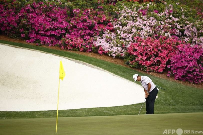 【4月10日 AFP】男子ゴルフ米国ツアーメジャー第1戦、第85回マスターズ・トーナメント(The Masters Tournament 2021)は9日、米ジョージア州オーガスタのオーガスタ・ナショナル・ゴルフクラブ(Augusta National Golf Club、パー72)で2日目が行われ、2位タイから出た松山英樹(Hideki Matsuyama)は「71」とスコアを一つ伸ばし、通算4アンダーの6位タイとなった。