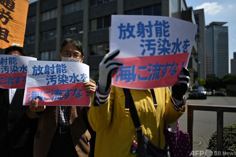 【4月12日 AFP】東日本大震災で被災した東京電力(TEPCO)福島第1原子力発電所から出る放射性物質を含む処理水を、海洋に放出する方針を政府が固めたことを受けて、これに反対する市民団体などが12日、都内の首相官邸前で抗議デモを行った。(c)AFP