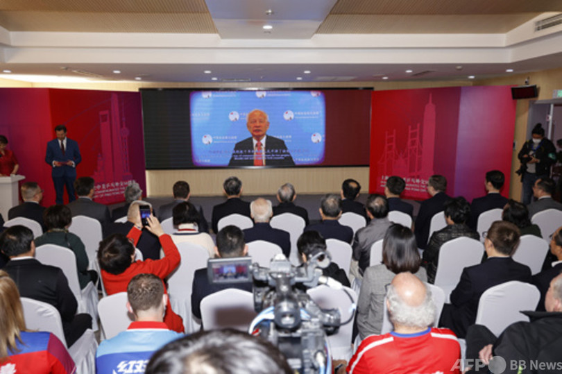 この日、米国選手と中国選手13人ずつからなる中米混合4チームの間で中米卓球親善試合も行われました。(c)CGTN Japanese/AFPBB News