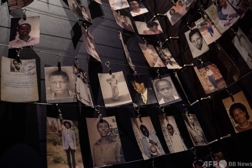 【4月19日 AFP】ルワンダの首都キガリにあるキガリ虐殺記念館(Kigali Genocide Memoria)に展示されている犠牲者の写真。キガリでは今月7日、1994年のツチ(Tutsi)人に対する大虐殺から27年の追悼行事が行われた。(c)AFP