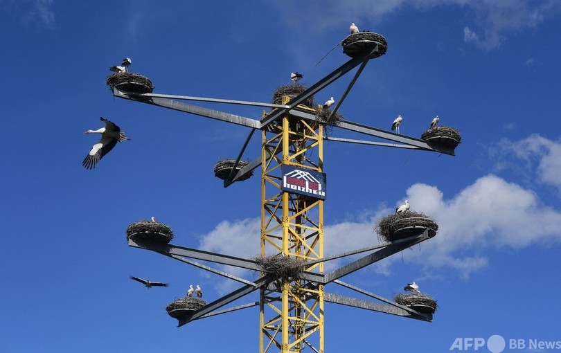 ニュース ライフ 今日の1枚 【今日の1枚】コウノトリ団地はクレーンの上 2021年4月25日 12:15 発信地:キルヒハイム/ドイツ [ ドイツ ヨーロッパ ] このニュースをシェア ‹ › ❮ 1/4 ❯ 建設用クレーンの上に巣を作ったコウノトリのペアたち。ドイツ南部バイエルン州のキルヒハイムで(2021年4月11日撮影)。(c)Christof STACHE / AFP 画像作成中 ! 【4月25日 AFP】建設用クレーンの上に巣を作ったコウノトリのペアたち。ドイツ南部バイエルン(Bavarian)州のキルヒハイム(Kirchheim)で。コウノトリのペアは、16年にわたり、クレーンに巣を作り、子育てをしてきた。建設会社は、解体予定だったクレーンに、新たに台座を設置。今年は、クレーン上に10個の巣が見られる。(c)AFP ライフ 一覧へ> メディア・報道関係・法人の方向け 写真・動画 購入のお問合せ>