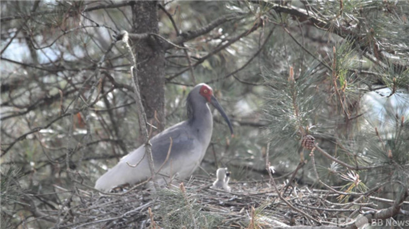 秦嶺の南麓に位置する陝西漢中トキ国家級自然保護区には、人工繁殖センターと華陽トキ種源基地の二つの人工飼育繁殖場所があり、210羽余りのトキを飼育しています。人工繁殖センターと華陽トキ種源基地では現在、計10組のトキが営巣していて、近いうちにさらに多くのトキのひなが誕生するとみられています。(c)CGTN Japanese/AFPBB News
