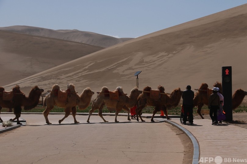 【4月16日 CNS】中国・甘粛省(Gansu)敦煌市(Dunhuang)の鳴沙山(Mingsha Mountain)にある月牙泉風景区に、ラクダ専用の信号が登場した。世界で初めてとみられ、ラクダの一群が信号に従って止まったり歩いたりする姿は、新たな観光の目玉となりそうだ。