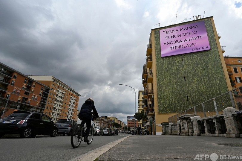 【4月15日 AFP】新型コロナウイルスとの闘いが続くイタリア・ローマの街中に、「お母さん、まだ埋葬してあげられなくてごめんなさい」とのメッセージが記された巨大屋外広告が登場した。コロナ禍で墓地が不足する中、当局に対応を迫る狙いがあるという。