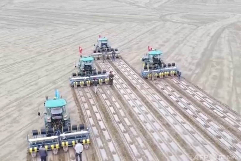 新疆・マナス県 綿花畑の種まき始まる、機械利用率98%