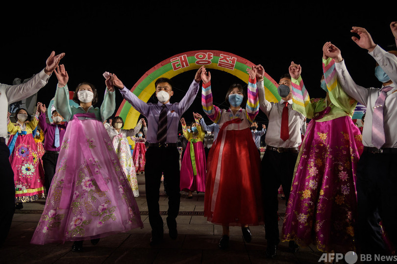 控えめだった昨年の太陽節に比べ、今年は祝賀ムードが高まった。韓国・北韓大学院大学(University of North Korean Studies)の梁茂進(ヤン・ムジン、Yang Moo-Jin)教授は、「昨年はほとんどの行事が新型コロナウイルス感染症(COVID-19)のため中止されたが、今年はほぼ例年通りの祝賀行事に戻った」とAFPに語った。(c)AFP