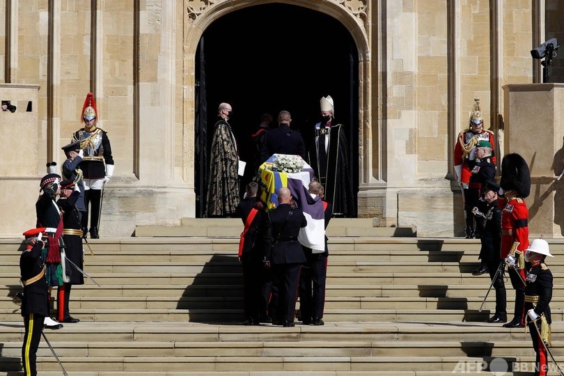 【4月17日 AFP】英ロンドン近郊のウィンザー城(Windsor Castle)内にある聖ジョージ礼拝堂(St George's Chapel)で17日、エリザベス女王(Queen Elizabeth II)の夫フィリップ殿下(Prince Philip)の葬儀が始まった。