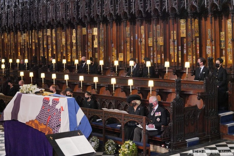 【4月18日 AFP】英ロンドン近郊のウィンザー城(Windsor Castle)内にある聖ジョージ礼拝堂(St George's Chapel)で17日、エリザベス女王(Queen Elizabeth II)の夫フィリップ殿下(Prince Philip)の葬儀が営まれた。女王にとって、73年間にわたり連れ添った殿下との最後の別れとなった。