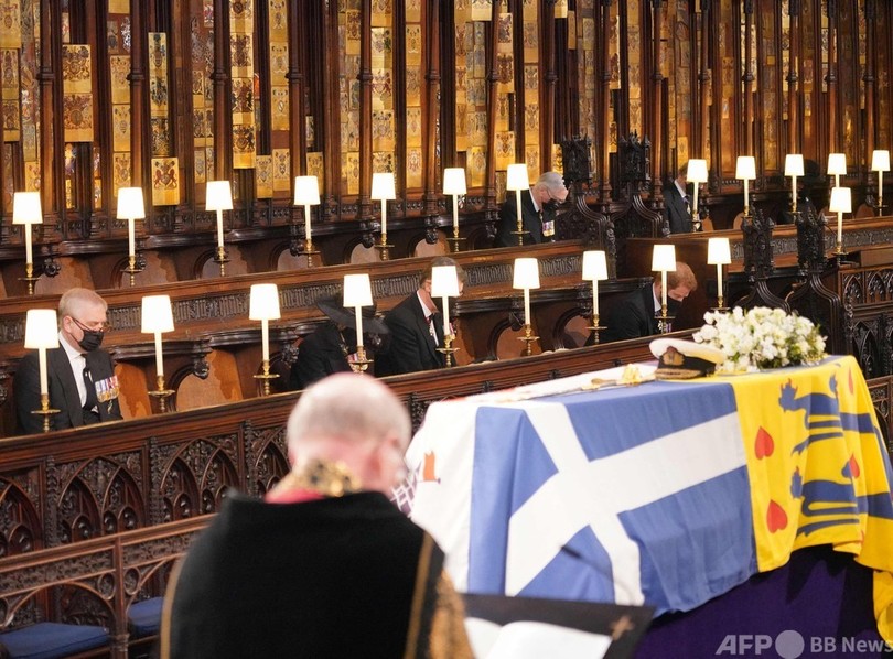 【4月18日 AFP】英ロンドン近郊のウィンザー城(Windsor Castle)内にある聖ジョージ礼拝堂(St George's Chapel)で17日、エリザベス女王(Queen Elizabeth II)の夫フィリップ殿下(Prince Philip)の葬儀が営まれた。女王にとって、73年間にわたり連れ添った殿下との最後の別れとなった。