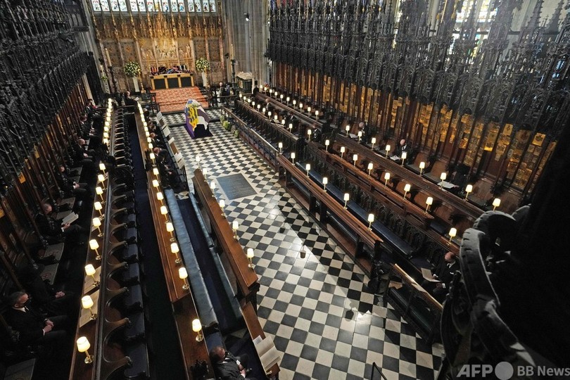 【4月18日 AFP】英ロンドン近郊のウィンザー城(Windsor Castle)内にある聖ジョージ礼拝堂(St George's Chapel)で17日、エリザベス女王(Queen Elizabeth II)の夫フィリップ殿下(Prince Philip)の葬儀が営まれた。女王にとって、73年間にわたり連れ添った殿下との最後の別れとなった。