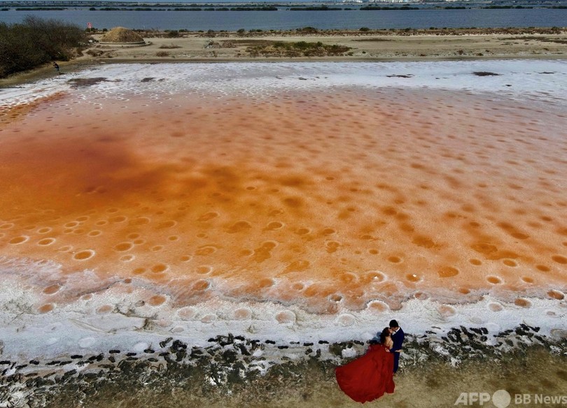 ニュース 環境・科学 ピンクの塩田、台南に出現 日照り続きで 2021年4月22日 12:16 発信地:台南/台湾 [ 台湾 中国・台湾 ] このニュースをシェア ‹ › ❮ 2/7 ❯ 台湾の台南で、日照りのためピンクになった塩田の横で撮影する新婚カップル(2021年4月21日撮影)。(c)Sam Yeh / AFP 画像作成中 ! 【4月22日 AFP】台湾の台南(Tainan)市で撮影された、日照り続きのためピンクになった塩田。大きな塩田の周りでは、散歩をする人や写真を撮影する新婚カップルの姿が見られた。(c)AFP 環境・科学 一覧へ> メディア・報道関係・法人の方向け 写真・動画 購入のお問合せ>