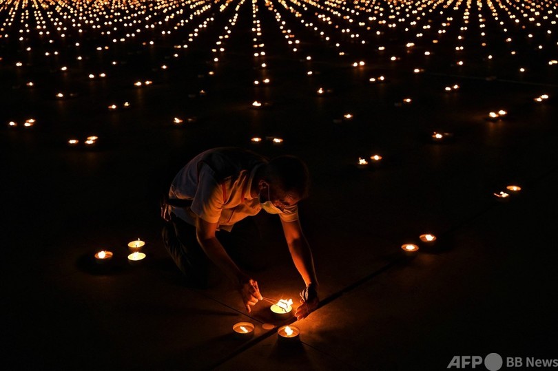 【4月23日 AFP】タイで物議を醸している新興仏教宗派「タンマガーイ(Dhammakaya)」が22日、アース・デー(地球の日、Earth Day)に合わせ、33万個のろうそくの炎で絵を描くギネス世界記録(Guinness World Records)に挑戦した。