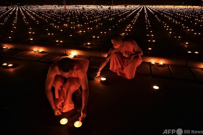 【4月23日 AFP】タイで物議を醸している新興仏教宗派「タンマガーイ(Dhammakaya)」が22日、アース・デー(地球の日、Earth Day)に合わせ、33万個のろうそくの炎で絵を描くギネス世界記録(Guinness World Records)に挑戦した。