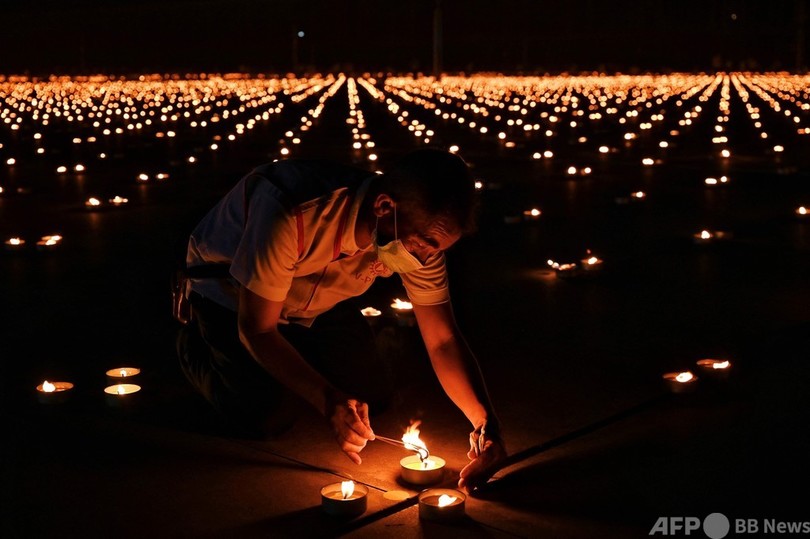 【4月23日 AFP】タイで物議を醸している新興仏教宗派「タンマガーイ(Dhammakaya)」が22日、アース・デー(地球の日、Earth Day)に合わせ、33万個のろうそくの炎で絵を描くギネス世界記録(Guinness World Records)に挑戦した。