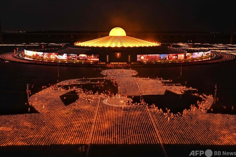 【4月23日 AFP】タイで物議を醸している新興仏教宗派「タンマガーイ(Dhammakaya)」が22日、アース・デー(地球の日、Earth Day)に合わせ、33万個のろうそくの炎で絵を描くギネス世界記録(Guinness World Records)に挑戦した。
