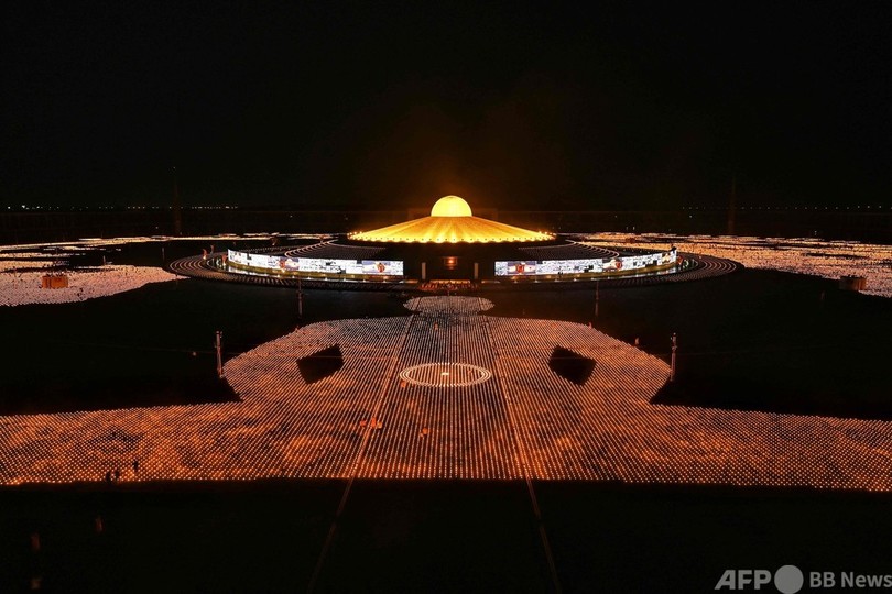 【4月23日 AFP】タイで物議を醸している新興仏教宗派「タンマガーイ(Dhammakaya)」が22日、アース・デー(地球の日、Earth Day)に合わせ、33万個のろうそくの炎で絵を描くギネス世界記録(Guinness World Records)に挑戦した。