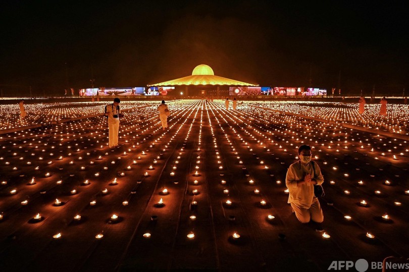 【4月23日 AFP】タイで物議を醸している新興仏教宗派「タンマガーイ(Dhammakaya)」が22日、アース・デー(地球の日、Earth Day)に合わせ、33万個のろうそくの炎で絵を描くギネス世界記録(Guinness World Records)に挑戦した。