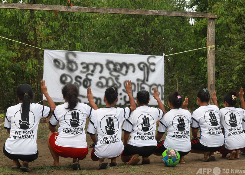 ボールには軍トップの写真、反国軍サッカー大会 ミャンマー