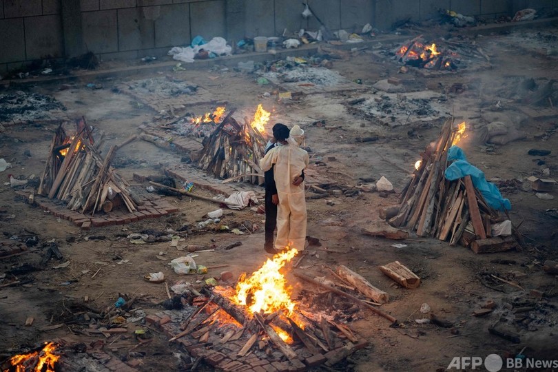 医療現場は逼迫(ひっぱく)し、火葬場は休みなく稼働している。このような中、米国や英国など欧米各国が、ワクチン原料の提供など相次いで支援を表明している。(c)AFP