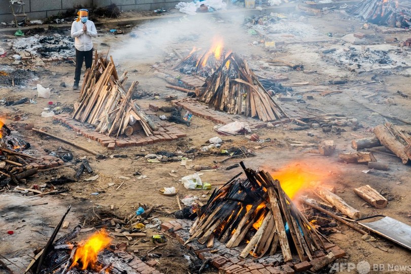 医療現場は逼迫(ひっぱく)し、火葬場は休みなく稼働している。このような中、米国や英国など欧米各国が、ワクチン原料の提供など相次いで支援を表明している。(c)AFP