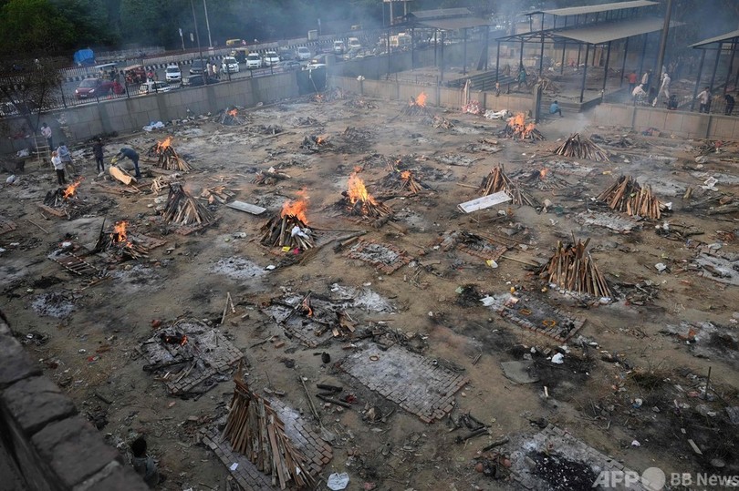 【4月27日 AFP】インドは26日、1日当たりの新型コロナウイルスの新規感染者が35万2991人、死者が2812人と過去最多を記録した。インドは現在、新たな新型ウイルス流行の波に見舞われており、数週間前に宗教行事や選挙活動などの大規模集会を認めていた、ヒンズー教至上主義のナレンドラ・モディ(Narendra Modi)政権に批判が集まっている。