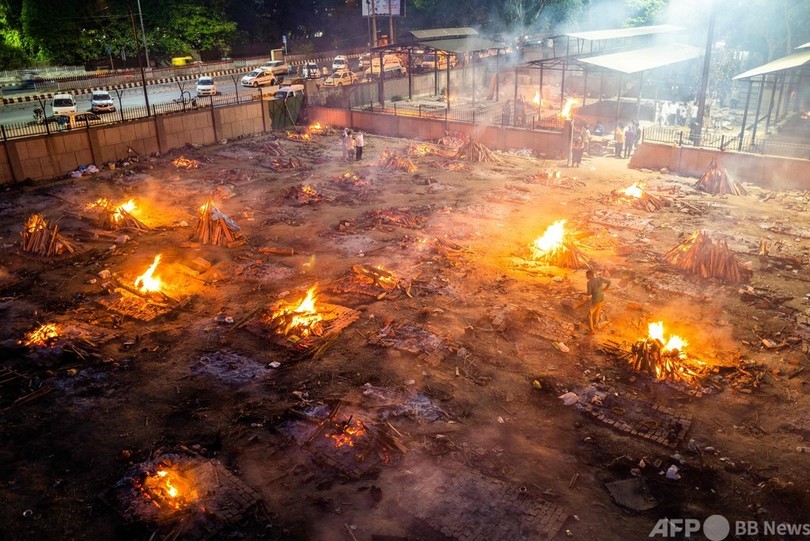 医療現場は逼迫(ひっぱく)し、火葬場は休みなく稼働している。このような中、米国や英国など欧米各国が、ワクチン原料の提供など相次いで支援を表明している。(c)AFP