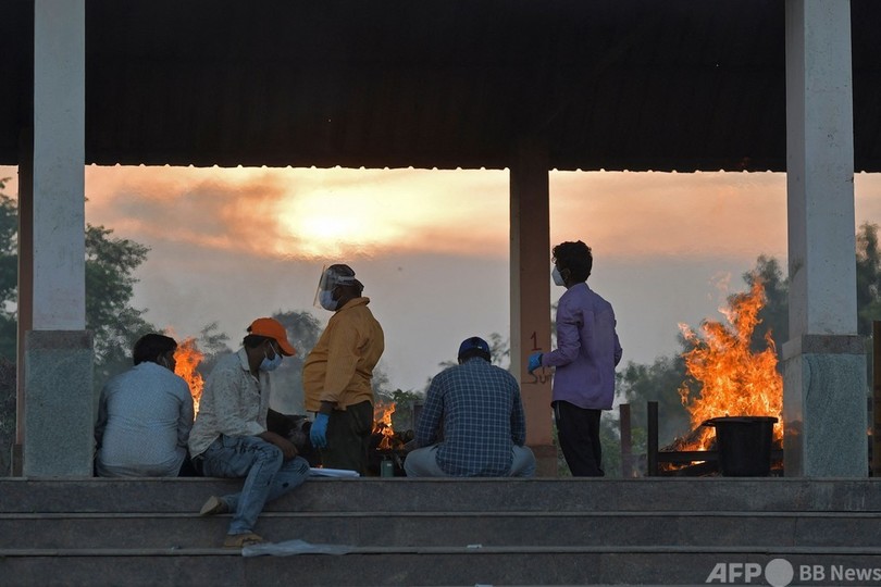 医療現場は逼迫(ひっぱく)し、火葬場は休みなく稼働している。このような中、米国や英国など欧米各国が、ワクチン原料の提供など相次いで支援を表明している。(c)AFP