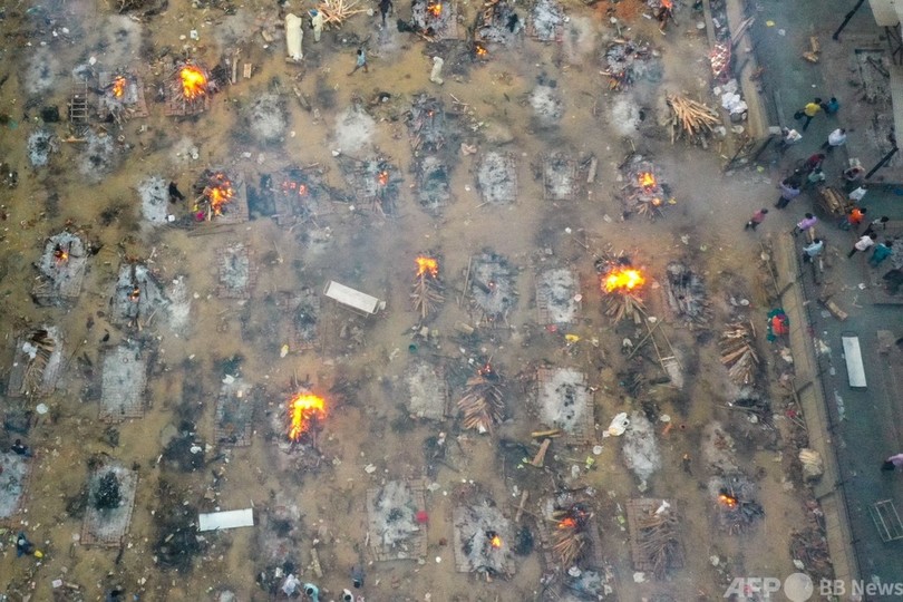 医療現場は逼迫(ひっぱく)し、火葬場は休みなく稼働している。このような中、米国や英国など欧米各国が、ワクチン原料の提供など相次いで支援を表明している。(c)AFP