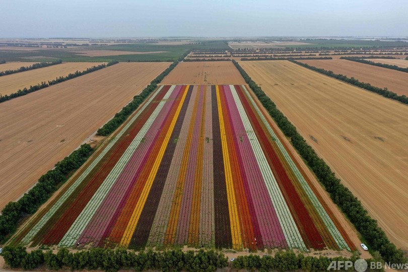 【4月29日 AFP】イスラエル南部、パレスチナ自治区ガザ地区(Gaza Strip)との境界に近いキブツ(農業共同体)「ニルイツハク(Nir Yitzhak)」で先週、ラナンキュラスが見頃を迎えた。兵士や家族らが花を摘んだりして楽しむ様子がみられた。(c)AFP