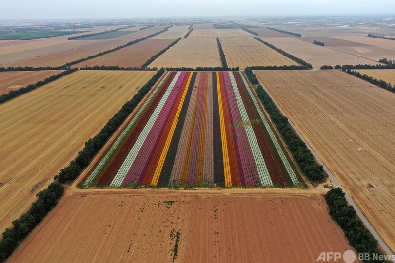 【4月29日 AFP】イスラエル南部、パレスチナ自治区ガザ地区(Gaza Strip)との境界に近いキブツ(農業共同体)「ニルイツハク(Nir Yitzhak)」で先週、ラナンキュラスが見頃を迎えた。兵士や家族らが花を摘んだりして楽しむ様子がみられた。(c)AFP