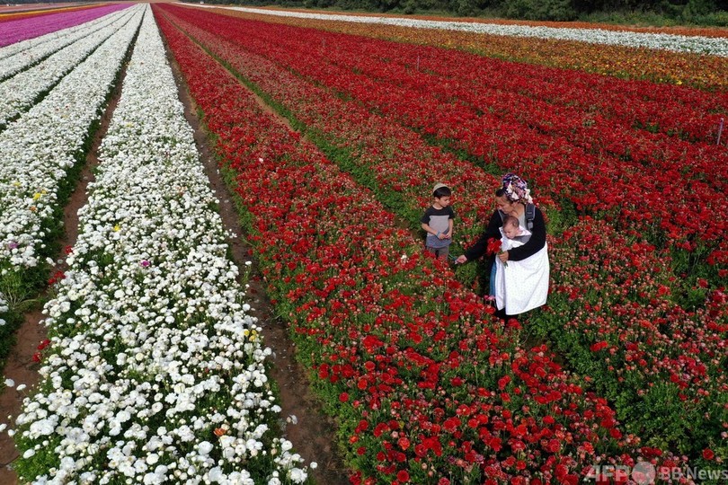 【4月29日 AFP】イスラエル南部、パレスチナ自治区ガザ地区(Gaza Strip)との境界に近いキブツ(農業共同体)「ニルイツハク(Nir Yitzhak)」で先週、ラナンキュラスが見頃を迎えた。兵士や家族らが花を摘んだりして楽しむ様子がみられた。(c)AFP