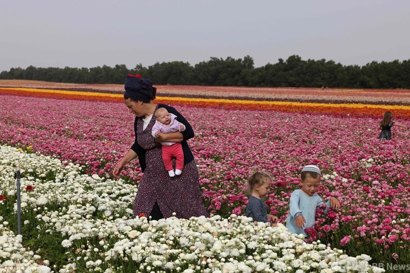 【4月29日 AFP】イスラエル南部、パレスチナ自治区ガザ地区(Gaza Strip)との境界に近いキブツ(農業共同体)「ニルイツハク(Nir Yitzhak)」で先週、ラナンキュラスが見頃を迎えた。兵士や家族らが花を摘んだりして楽しむ様子がみられた。(c)AFP