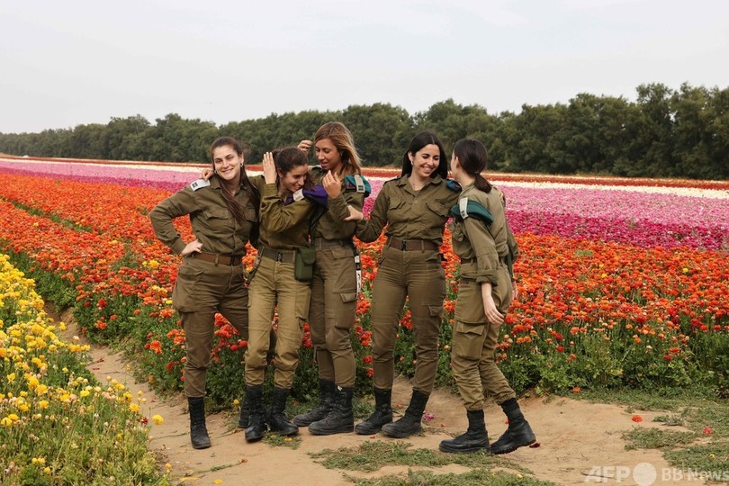 兵士の顔にも笑み 満開の花畑 イスラエル