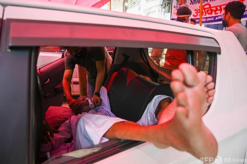 【4月29日 AFP】インドの首都ニューデリー近郊ガジアバード(Ghaziabad)にある混雑した道路のわきで、ヒマンシュ・ベルマ(Himanshu Verma)さん(32)は、新型コロナウイルスに感染した母親(58)の顔にマスクが当てられ、酸素吸入が始まると、安堵(あんど)のため息をついた。