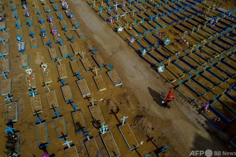 ニュース ライフ 特集:新型コロナウイルス感染症「COVID-19」 道路も墓地に…ブラジルのコロナ死者、40万人超に 2021年4月30日 10:15 発信地:マナウス/ブラジル [ ブラジル 中南米 ] このニュースをシェア ‹ › ❮ 9/16 ❯ ブラジル北部アマゾナス州マナウスの墓地(2021年4月29日撮影)。(c)MICHAEL DANTAS / AFP 画像作成中 ! 【4月30日 AFP】ブラジルは29日、新型コロナウイルスによる死者が40万人を超えた。北部アマゾナス(Amazonas)州マナウス(Manaus)の墓地では、空きがなくなったため、道路にも遺体を埋葬している。 人口約2億1200万人のブラジルは、新型ウイルスによる累計死者数が米国に次いで2番目に多い。(c)AFP 特集:新型コロナウイルス感染症「COVID-19」 世界各地で猛威を振るう新型コロナウイルス。 ライフ 一覧へ> メディア・報道関係・法人の方向け 写真・動画 購入のお問合せ>