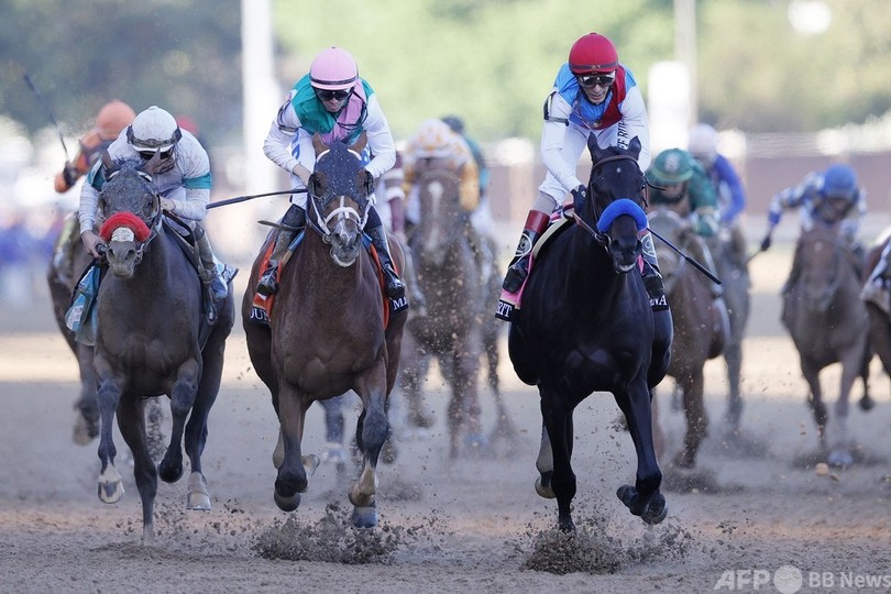 米クラシックはこの後、5月15日にプリークネス・ステークス(146th Preakness Stakes、3歳、ダート約1900メートル)、6月5日にベルモント・ステークス(153rd Belmont Stakes、3歳、ダート約2400メートル)が行われる。(c)AFP