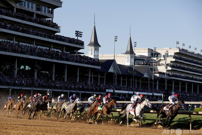 米クラシックはこの後、5月15日にプリークネス・ステークス(146th Preakness Stakes、3歳、ダート約1900メートル)、6月5日にベルモント・ステークス(153rd Belmont Stakes、3歳、ダート約2400メートル)が行われる。(c)AFP