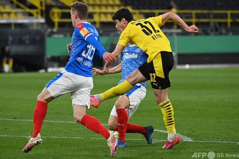【5月2日 AFP】サッカードイツカップ(German Cup 2020-21)は1日、準決勝の試合が行われ、ボルシア・ドルトムント(Borussia Dortmund)はチーム得点王のアーリング・ブラウト・ハーランド(Erling Braut Haaland)が欠場した影響を感じさせず、2部ホルシュタイン・キール(Holstein Kiel)を5-0で退けて決勝に進んだ。